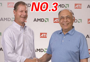 - 2006年6月,AMD宣布以54亿美元价格收购图形芯片设计厂商ATI,并于同年10月完成交易。在不同的市场,这两家公司都面临着相同的竞争对手-英特尔,这两家公司没有一家拥有足够的实力与英特尔抗衡。交易完成后不久,AMD就公布了合并后的第一个成果Fusion。对AMD而言,收购ATI 不仅仅是带来了新技术,而且是一项有利可图的新业务。随后的几年AMD财务表现不佳,而以ATI为重要组成部分的GPU部门却十分成功。