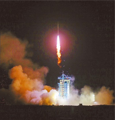 搭载实践十号卫星的长征二号丁运载火箭升空。