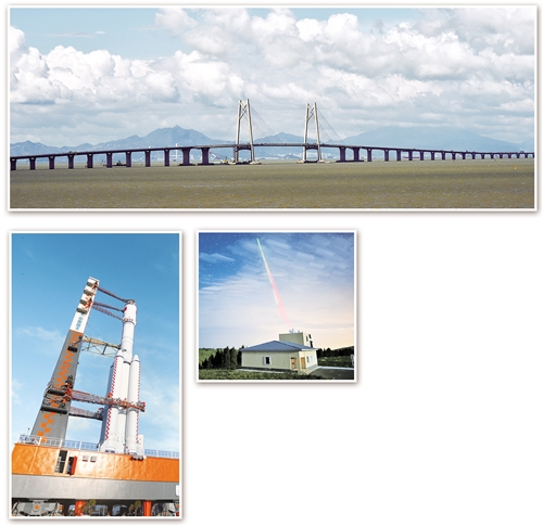图① 2017年7月7日,港珠澳大桥实现了主体工程全线贯通,一座长达55公里的钢铁大桥飞跨茫茫大海,历史性地将香港、珠海、澳门连在一起。 (新华社发)