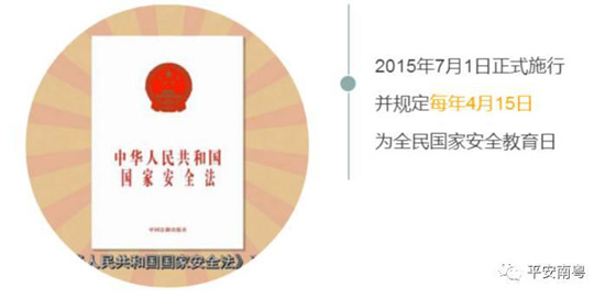 2015年7月1日,第十二届全国人民代表大会常务委员会第十五次会议通过了《中华人民共和国国家安全法》, 该法自公布之日起施行。国家安全法第14条规定:每年4月15日为全民国家安全教育日。