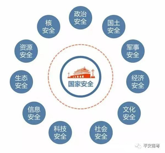 为了体现总体国家安全观的要求,《中华人民共和国国家安全法》从政治安全、国土安全、军事安全、经济安全、文化安全、社会安全、科技安全、信息安全、生态安全、资源安全、核安全等11个领域 对国家安全任务进行了明确。