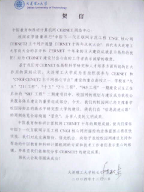大连理工大学校长程耿东贺信