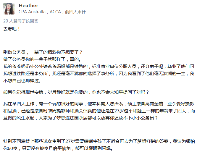 即便对于应届毕业生来说,考过一两门注会科目,在就业季找工作,也是很好的敲门砖。甚至,对于公务员,也有很多人下定决心一定要考CPA。