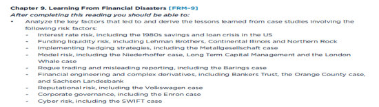 本次FRM协会对风险案例进行了调整,删除了曼哈顿银行、kidder Peabody、爱尔兰联合银行、UBS银行、法兴银行的案例,如下图所示。