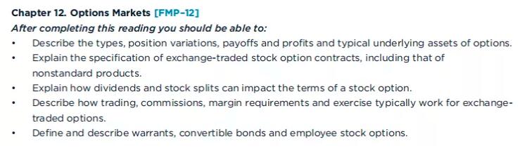 12章的考点也属于新增考点,在去年考纲中未提及,其中考点内容围绕在期权市场的定性内容上。