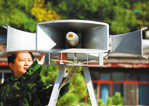 图④:9月18日12时,乌鲁木齐数百台分布全市的防空警报统一鸣响,持续时间长达19分钟……行 者摄