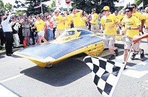 密歇根大学学生在“2010美国太阳能汽车挑战赛”上夺冠,这是该校第六次将冠军奖杯收入囊中。图片来源:加拿大广播公司网站