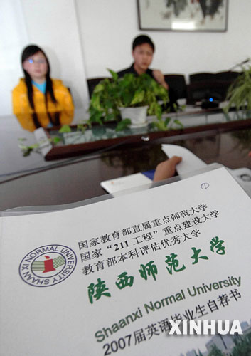 图为某师范大学学生在接受招聘面试 新华社记者丁海涛摄