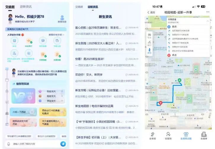 2025年是西安交通大学人工智能赋能年,信息中心上线了多个AI助手,包含“交晓新”“交晓智”“智慧课堂2.0”等,其中“交晓新”正是专为新生准备的智慧报到迎新平台。