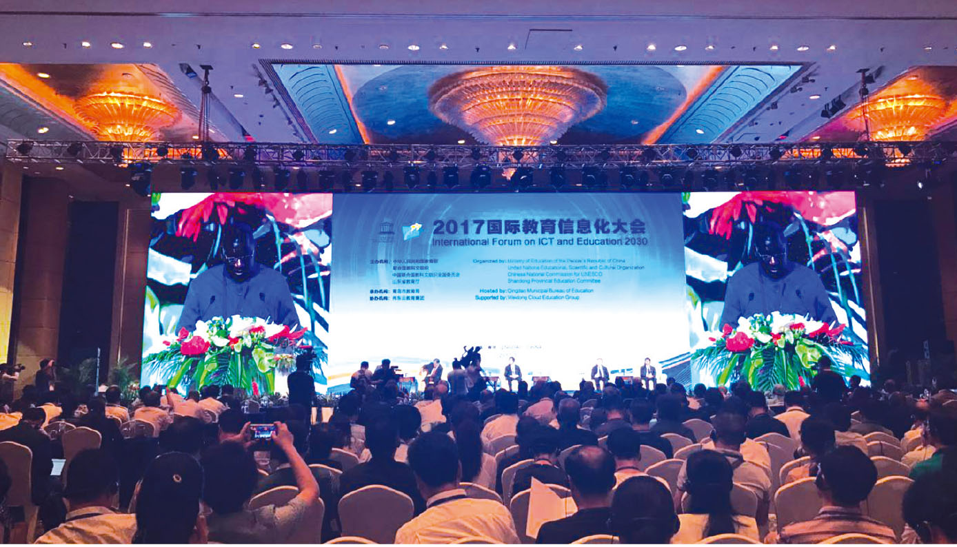 本刊讯 7月10~11日,2017国际教育信息化大会在山东青岛召开。本届大会以“2030年教育议程下的教育信息化发展”为主题,旨在落实《青岛宣言》。来自全球80多个国家、地区的行政官员、专家学者、校长和教师代表共400余人参加了会议。
