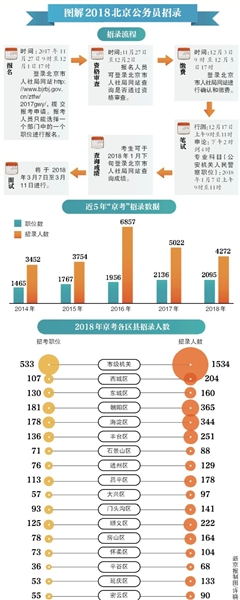 2018年度“京考”即将启动。11月24日,新京报记者从北京市公务员管理部门获悉,《北京市各级机关2018年度考试录用公务员公告》目前已经公布。今年北京公务员招录人数为4272人,招考职位为2095个,相比2017年,招录人数减少750人,职位减少41个。