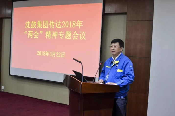 2018年全国两会后,戴继双代表向沈鼓集团传达会议精神。
