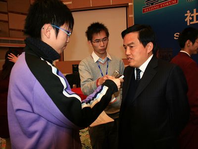 11月2日上午,“社会变革与大学发展”分论坛在英杰交流中心阳光大厅举行。中国传媒大学校长苏志武以“传媒影响世界,教育引领传媒”为题进行了主题发言,引发了在场学者的热烈讨论。在论坛的茶歇时间,苏志武教授欣然接受了北大新闻网记者的专访。