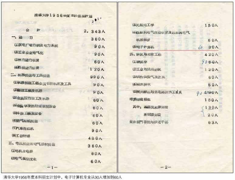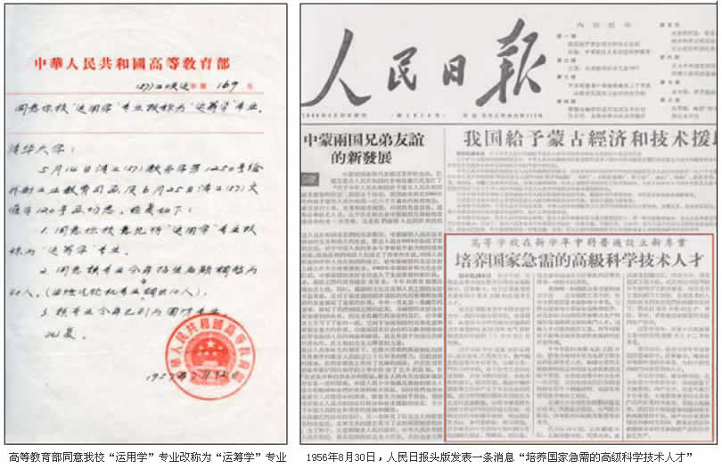 8月30日,人民日报头版发表了一条消息:“培养国家急需的高级科学技术人才”,其中写道:新学年起在我国高等学校里将开始培养金属物理学、计算数学、电子计算机等现代最新科学技术方面的高级专业人才电子计算机专业今年将在清华大学一到四年级全面开设。在暑期里从清华大学和交通大学抽调到这个专业的四年级三十名学生正在补课。这个学校今年还要开设运用学 、高压技术、工业热工学、燃气轮机制造等四个新专业。运用学是一门新兴的科学。