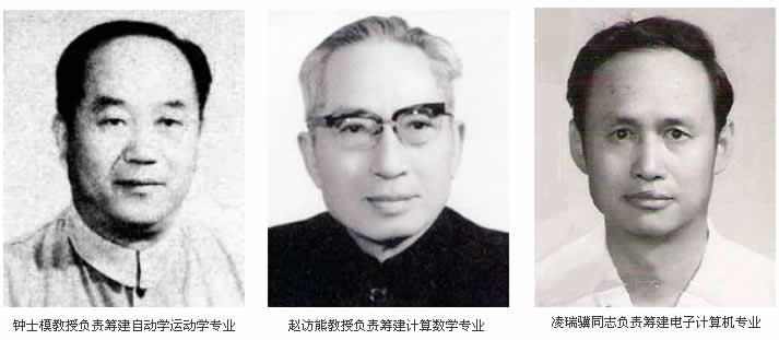 1955年,电机工程系增设“自动学远动学”专业,它是后来的“自动控制系”第一块基石,由副系主任钟士模教授负责筹建。1955年秋,全国统招录取本专业首届一年级新生,共56名,分成自01班和自02班。1956年秋,全国统招录取本专业第二届一年级新生,分成自11班和自12班。同时录取运筹学专业首届一年级一个班(即运11 班)新生。此外,还从电机工程系其他专业及动力机械等系抽调来一百多名三、四年级的学生分别组成自9班和自8班。
