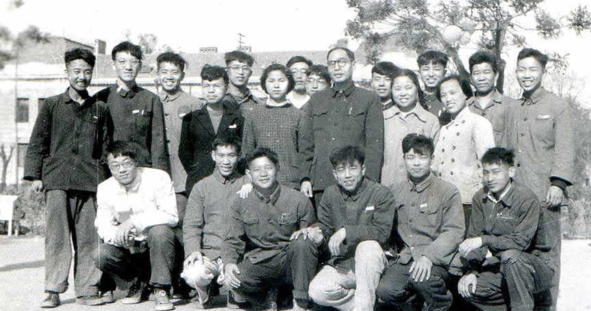 蒋南翔校长(后排右七)与原自21班(1963届)部分同学及738厂工人师傅合影