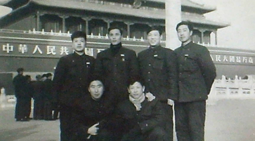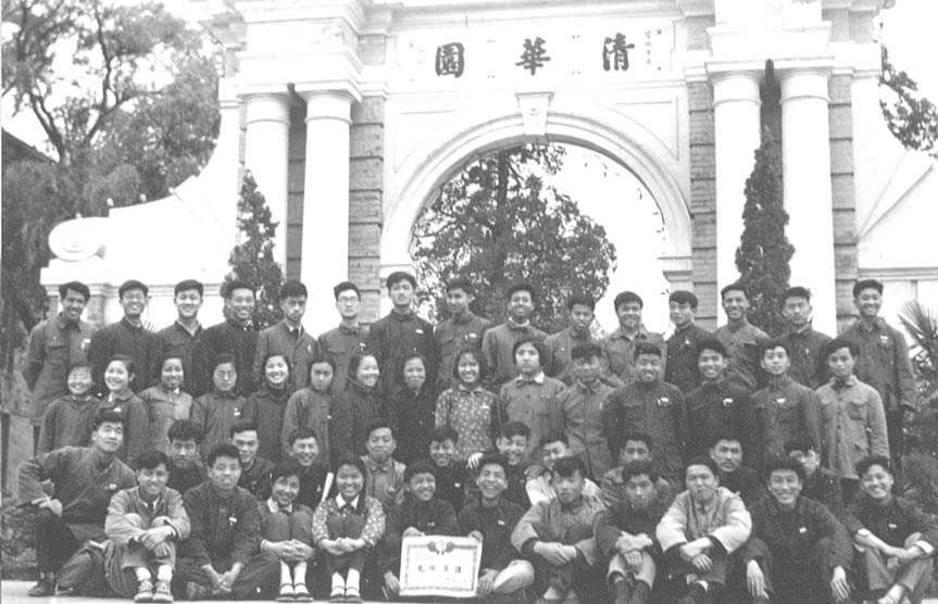 哈军工来清华大学自动控制系借读的四位同学:康鹏(后左二),曲庭维(后左三),杨振濂(后左四),常翰章(前左一)