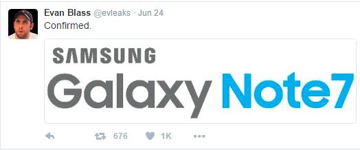 爆料大神伊万·布拉斯(EvanBlass)日前发布Twitter,内含三星下一款高端平板手机的官方LoGo图像。该图像确认了三星将跳过GalaxyNote6,直接推出GalaxyNote7,从而与三星GalaxyS7的命名保持一致。