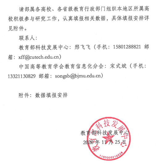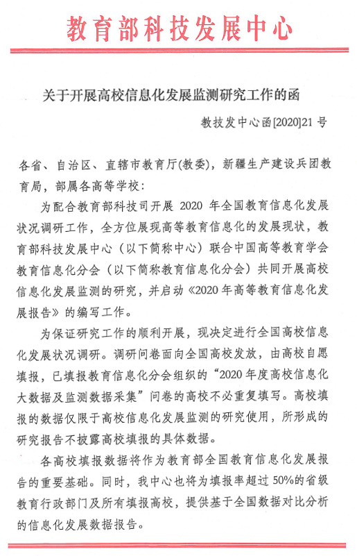 《教育部科技发展中心关于开展高校信息化发展监测研究工作的函》原文如下: