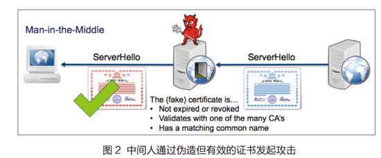 任何一个CA都可以为任何一个网站签发证书,无需该网站的同意。拿到这种非授权的证书,可以构造一个假冒的网站,用户的浏览器在访问这种服务器时不会产生告警。
