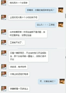 相比疯狂的招生,对这些兼职学生,“歪”学校又是吝啬的。贺斌和同学的报酬,按照有意向学生的数量算,每个人从几十块到几百块不等。干了十多天后,贺斌选择离开,“倒不是因为报酬低或者是老被骂,而是发现这就是在骗人,过不了心里那关。”