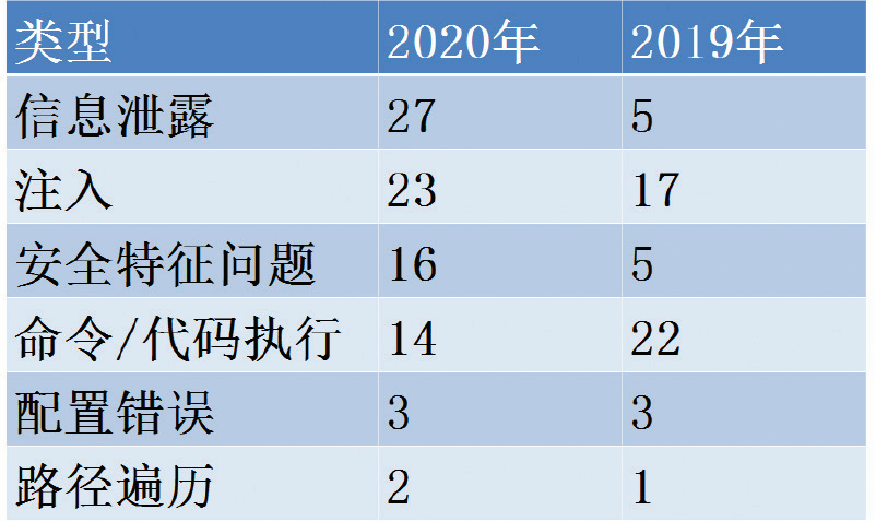 通过近两年的漏洞数量和类型的统计数据,命令/代码执行等高风险漏洞数得到有效遏制,漏洞处置体系发挥了作用;技术层面的高危风险整体被遏制的同时,信息泄露类、安全特性类等风险,属于管理层面的漏洞不降反升,以往被忽视的管理层漏洞更被白帽子们重点眷顾,因此,进一步加强宣传和管理,强化管理人员的网络安全意识,是降低此类风险漏洞的必要手段。