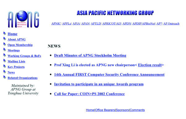 -1994年11月,由NCFC管理委员会主办,中国科学院、北京大学、清华大学协办的亚太网络工作组(APNG)年会在清华大学召开。这是亚太国际互联网社群首次在中国召开地区年会。2001年,CERNET网络中心副主任、清华大学教授李星当选为APNG主席。