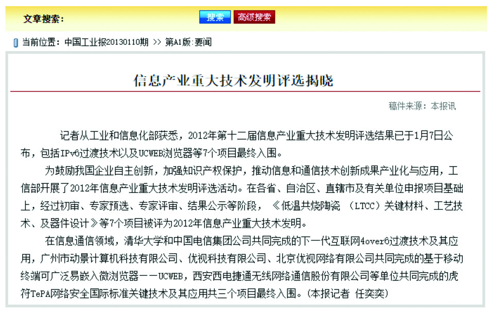 “下一代互联网4over6过渡技术及其应用”项目荣获2012年度中国信息产业重大发明奖