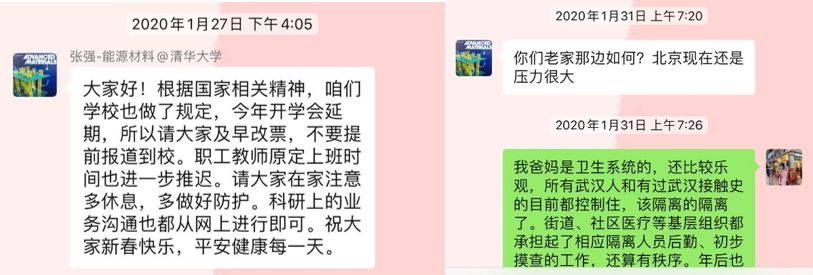 疫情爆发的情况下,化工系张强教授快速响应学校号召,与课题组同学们一一交流课题,让大家安心居家开展科研工作;定期开展远程组会交流讨论,保持科学研究照常开展。