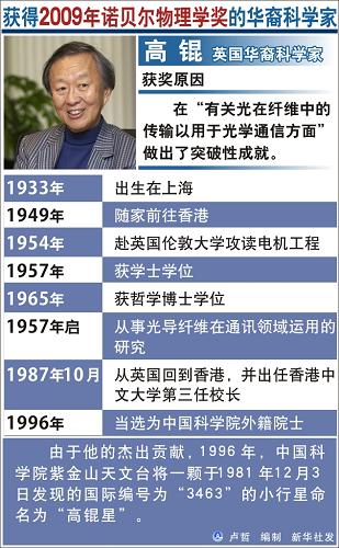 图表:获得2009年诺贝尔物理学奖的华裔科学家——高锟 新华社发