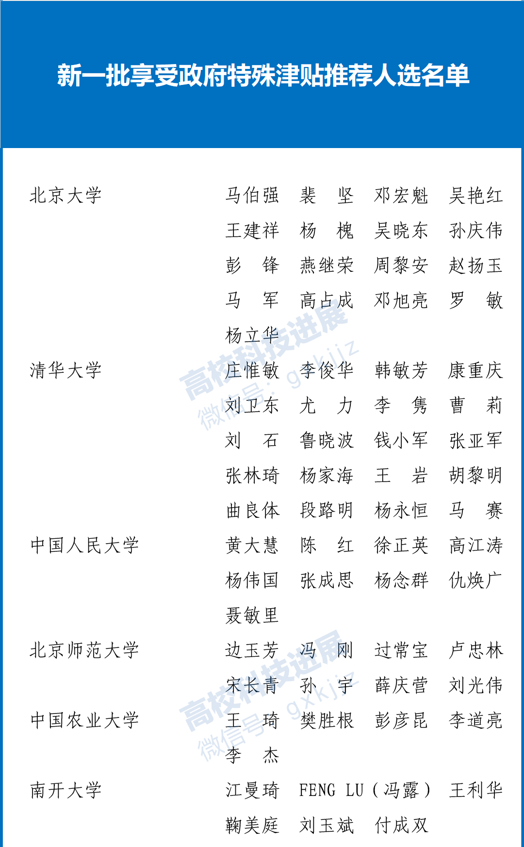 新一批享受政府特殊津贴推荐人选名单如下: