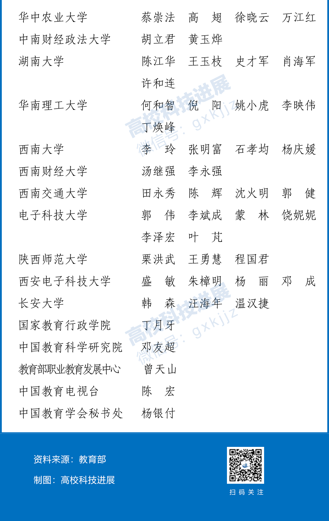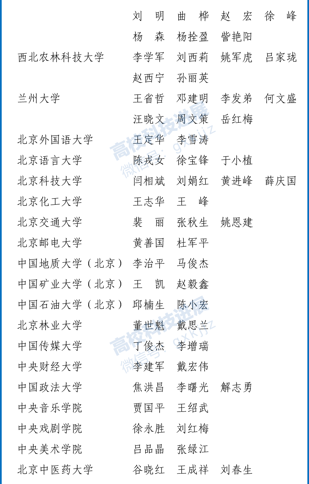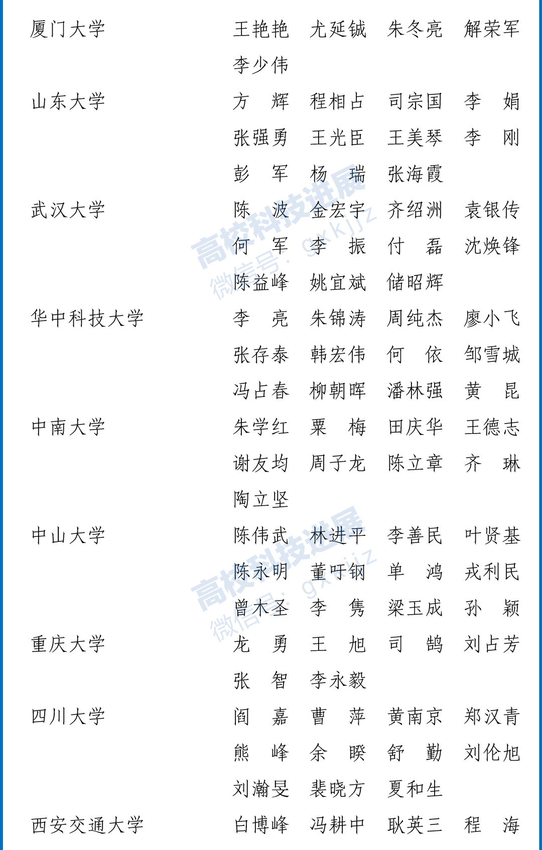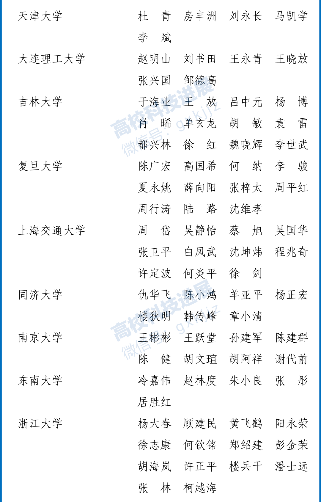 本次教育部推荐的人员名单显示,76所教育部直属高校有入选,其中清华大学获推荐20人,北京大学17人,浙江大学14人,华中科技大学、吉林大学和中山大学各12人,复旦大学、上海交通大学、武汉大学、四川大学、山东大学和西安交通大学各11人。此外,中南大学、中国人民大学、北京师范大学、南京大学、同济大学及兰州大学获推荐人数均在7人及以上。其他高校获推荐人数少于7人。