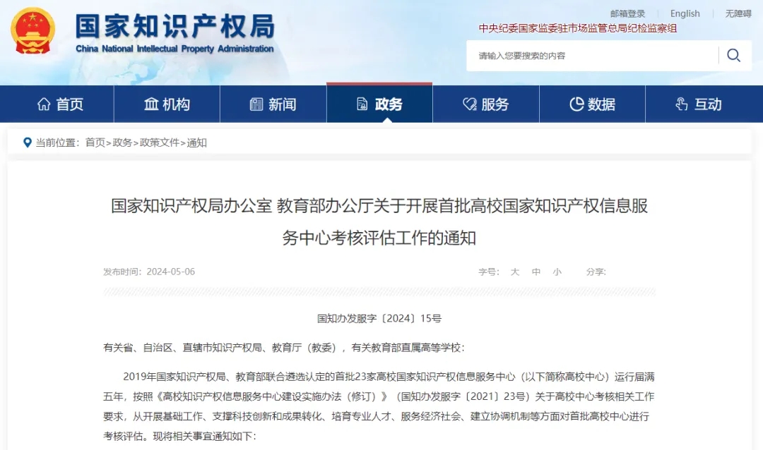 近日,《国家知识产权局办公室 教育部办公厅关于开展首批高校国家知识产权信息服务中心考核评估工作的通知》发布,首批23家高校国家知识产权信息服务中心,将接受考核评估。