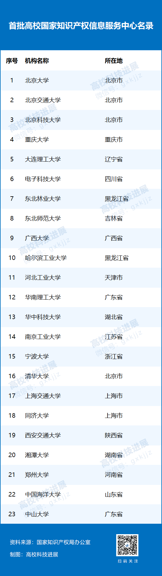 首批高校国家知识产权信息服务中心名录如下: