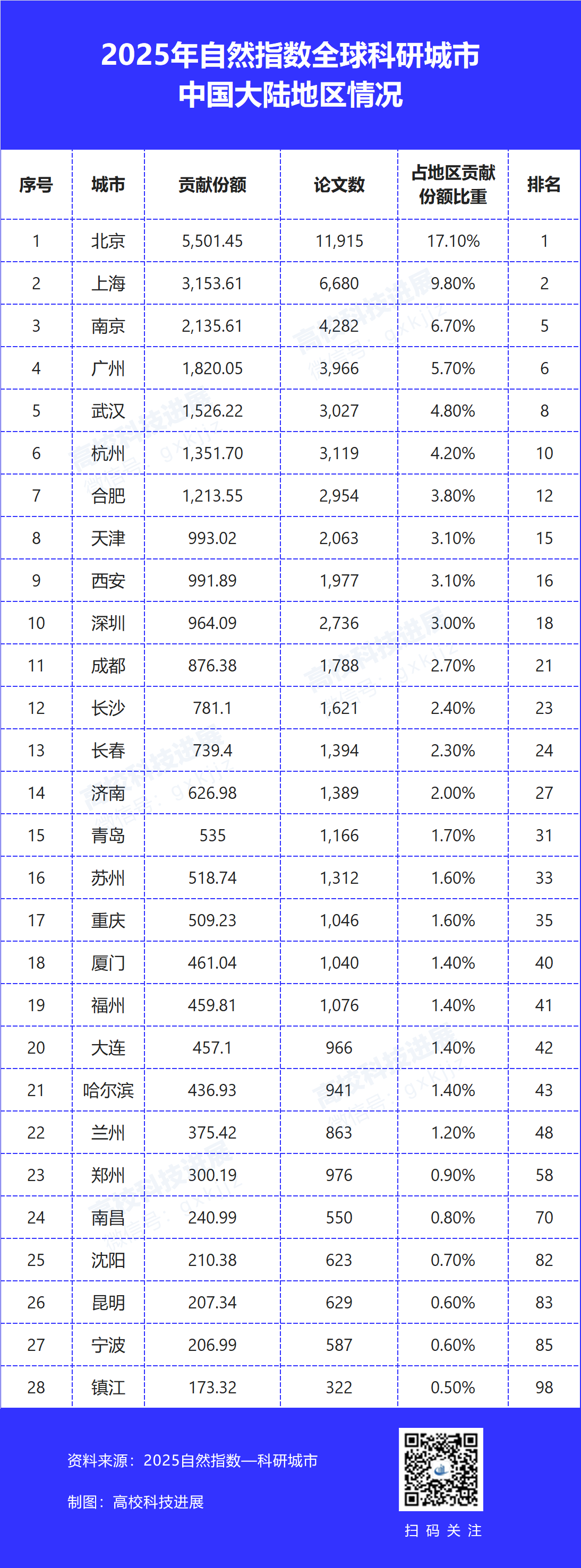 自然指数由国际知名科技出版机构“施普林格-自然出版集团”下属机构编制并定期发布,用于追踪全球科研机构在145种高质量自然科学和医学健康期刊上发表科研论文的贡献情况。