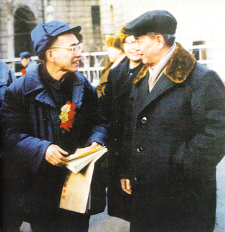 1978年3月,方毅(右)与著名数学家陈景润亲切交谈。