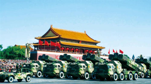 放飞神剑、收获和平。在纪念抗战胜利70周年阅兵式上,“东风”劲吹、“红旗”招展、“长剑”啸天、“鹰击”长空,一枚枚导弹犹如神剑,振我国威。