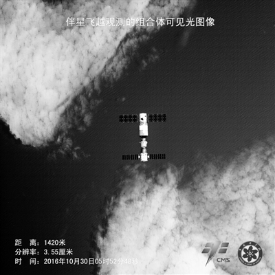 10月23日7时31分,贮存在天宫二号上38天的伴随卫星成功释放,并完成红外相机和可见光相机首次对天宫二号和神舟十一号组合体的成像。
