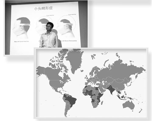 图为许执恒研究员在介绍小头畸形症状表现。郭静原摄