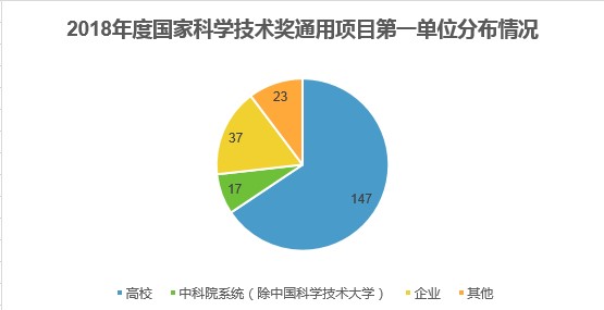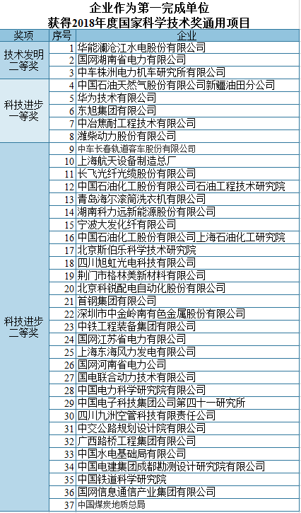 企业在2018年度国家科学技术奖榜单上相当活跃。据澎湃新闻统计,三大奖通用项目的第一单位中共有37家企业,占通用项目授奖总数的16.5%。