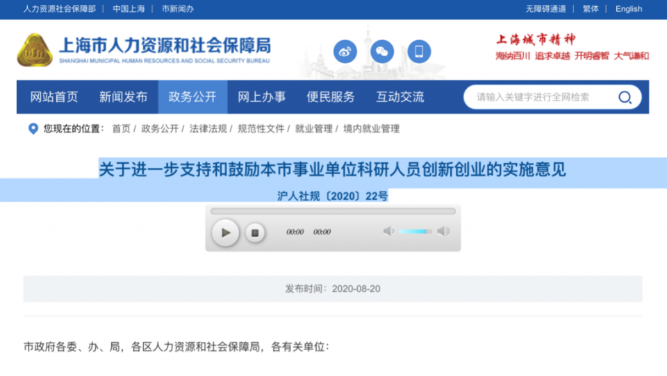 近日,上海市人力资源和社会保障局发布《关于进一步支持和鼓励本市事业单位科研人员创新创业的实施意见》。