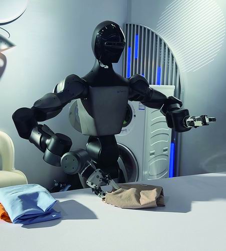 ▲人形机器人正在娴熟地叠衣服。蒲雅杰/摄