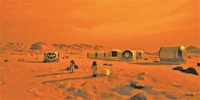 人类登陆火星(艺术图)。