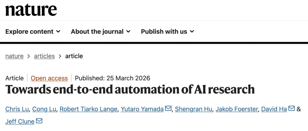 2026年3月,有学者在《自然》发表文章,提出了一种用于实现科学研究全过程端到端自动化的系统流程,取名为“AI Scientist”(AI科学家)。此前,还完成了首篇完全由AI生成并通过了标准的科学同行评审流程的研究论文。