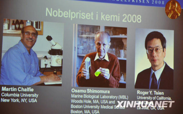 瑞典皇家科学院8日宣布,日本科学家下村修、美国科学家马丁·沙尔菲和美籍华裔科学家钱永健获得今年的诺贝尔化学奖。