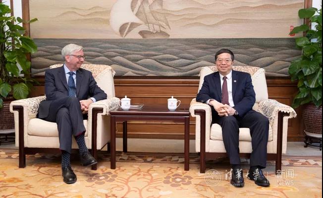 邱勇还向杜思齐介绍了清华近期的发展情况,特别是清华全球战略的实施推进情况和近年重要的国际合作成果,包括与华盛顿大学和微软合作在西雅图创建全球创新学院,与米兰理工大学合作在米兰设立中意设计创新基地,去年相继成立东南亚中心和拉美中心等。邱勇表示,清华大学非常重视与剑桥大学的合作,两校近年来合作交流密切,希望两校未来积极推动落实多领域、多形式的深度合作。