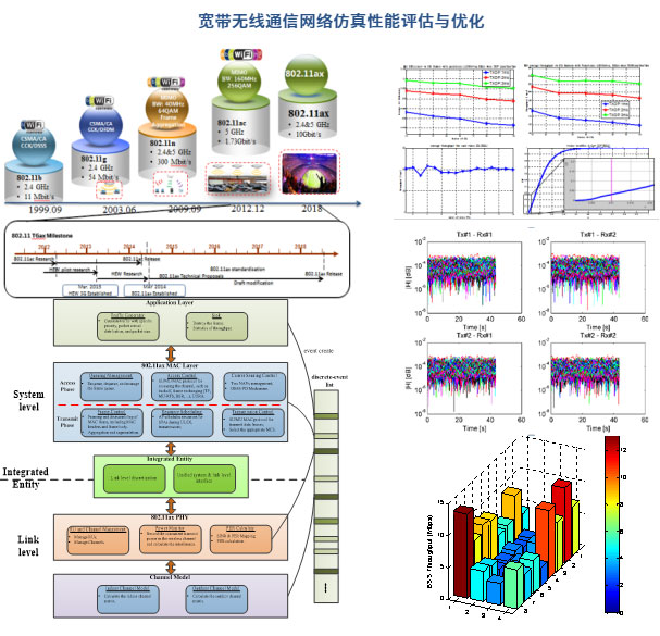 电子信息学院李波教授团队经过多年在宽带无线通信网络领域的科学研究工作的积累,搭建了链路级和系统级一体化的仿真性能验证平台,可对包括WiFi网络、蜂窝移动通信网络、数据链通信网络、卫星网络、物联网等多种无线网络的性能进行精准的评估,是实现网络性能优化的不可或缺的基础性支撑平台。