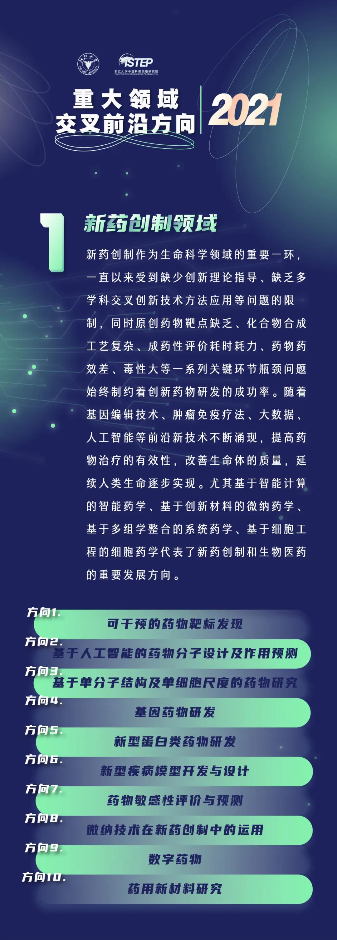 9月13日,由浙江大学中国科教战略研究院牵头完成的科技战略报告《重大领域交叉前沿方向2021》正式发布。该报告瞄准当前全球科技创新热点话题,选取新药创制、未来计算、人工合成生物、AI+基因组编辑、脑-意识-人工智能等五大领域,凝练形成50项交叉前沿方向。同时,对各领域全球发展趋势、国家战略布局和未来发展规划进行了解读与分析,比较深度和客观地反映了总体发展态势。