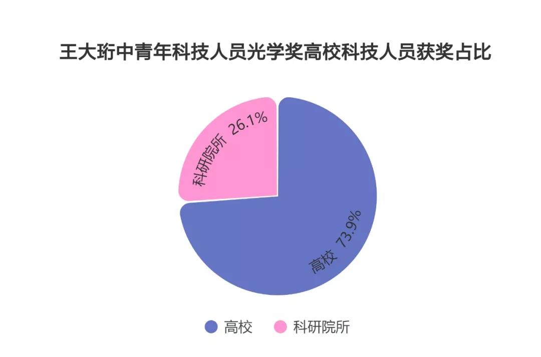 王大珩中青年科技人员光学奖是由著名科学家、两院院士王大珩出资设立的,国内光学领域最高的奖项,授奖对象为光学与光学工程领域的杰出中青年科技人员。自1996年设立以来,共有23人获得了该奖项,其中有17人为国内高校的中青年科技人员,占全部获奖人数的73.91%。