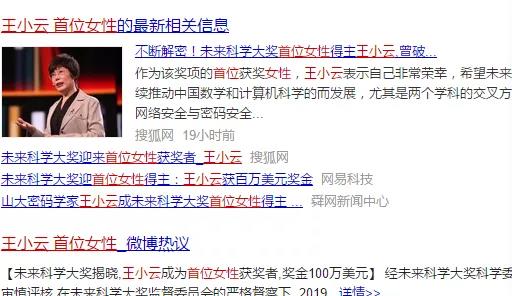 9月7日,第四届“未来科学大奖”获奖名单在北京公布,该获奖名单里出现了首位女性得主, 引发了不少网友的关注。
